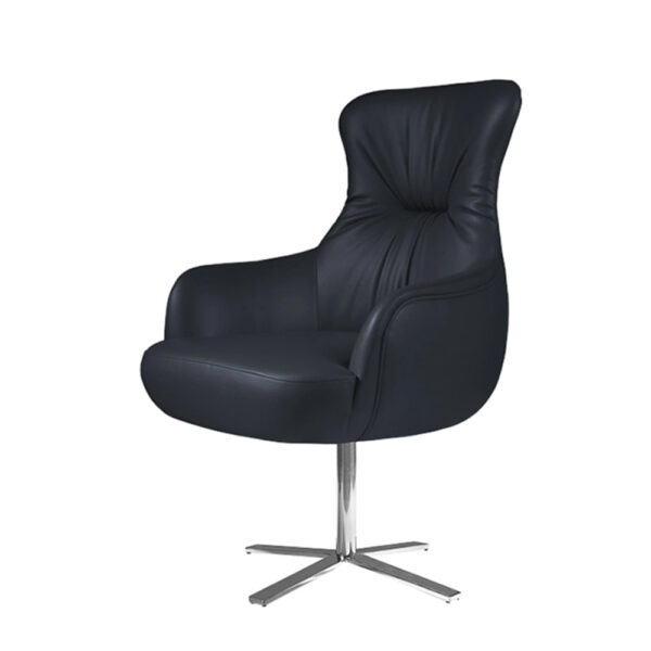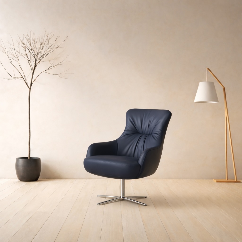 The classic Bacco Armchair modified to promote optimal relaxation. Abundant padding creates an enveloping, snug seat while the detail on the wraparound arm adds depth to the rounded shape. This high back lounge chair encourages rest and relaxation. The chair has everything needed for the contract and consumer segments and is perfect for a quick rest in a hotel lobby or a TV dinner in the lounge at home. In addition, we are able to upholster the lounge chair in a wide range of fabrics and leathers to suit.