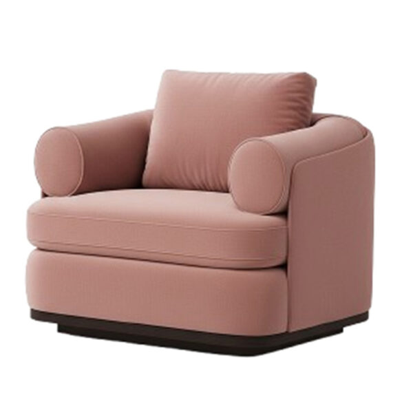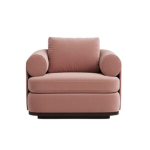 “The Camila Chair blends modern softness with timeless detail. Its rounded arms, bolster accents, and plush cushioning create an inviting silhouette that feels both stylish and approachable. Resting on a recessed plinth base, the Camila is equally at home in a refined residence or a luxury hospitality setting, offering versatility with a touch of playful sophistication.
