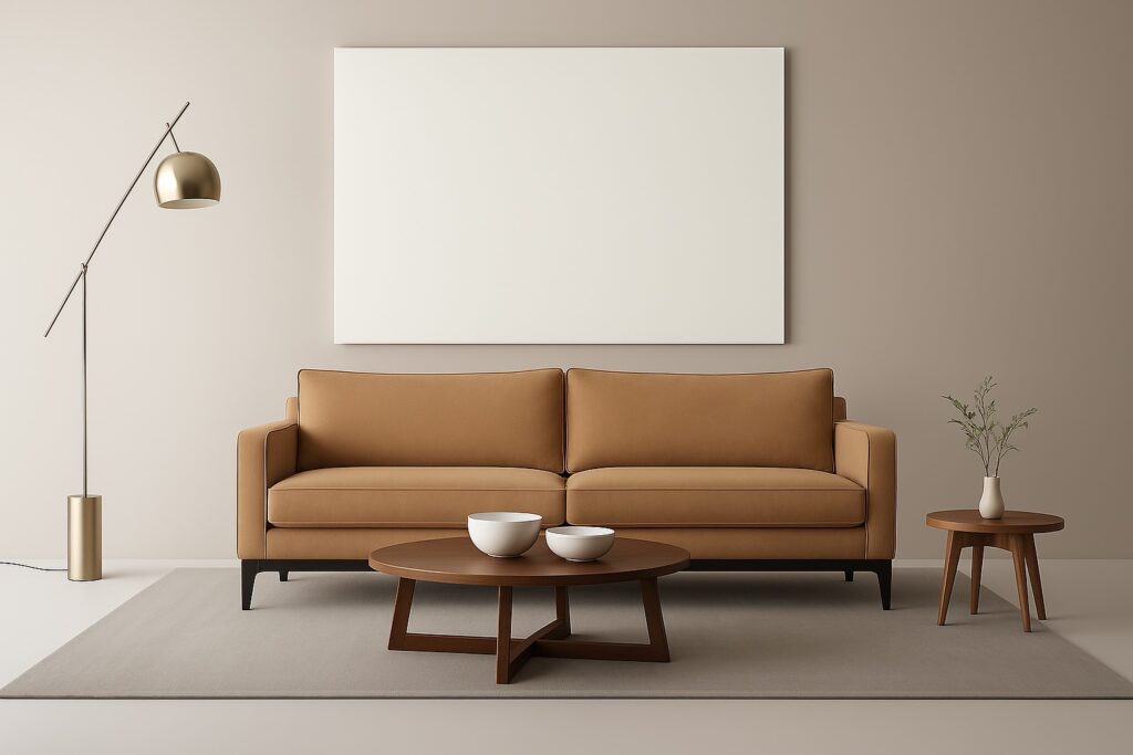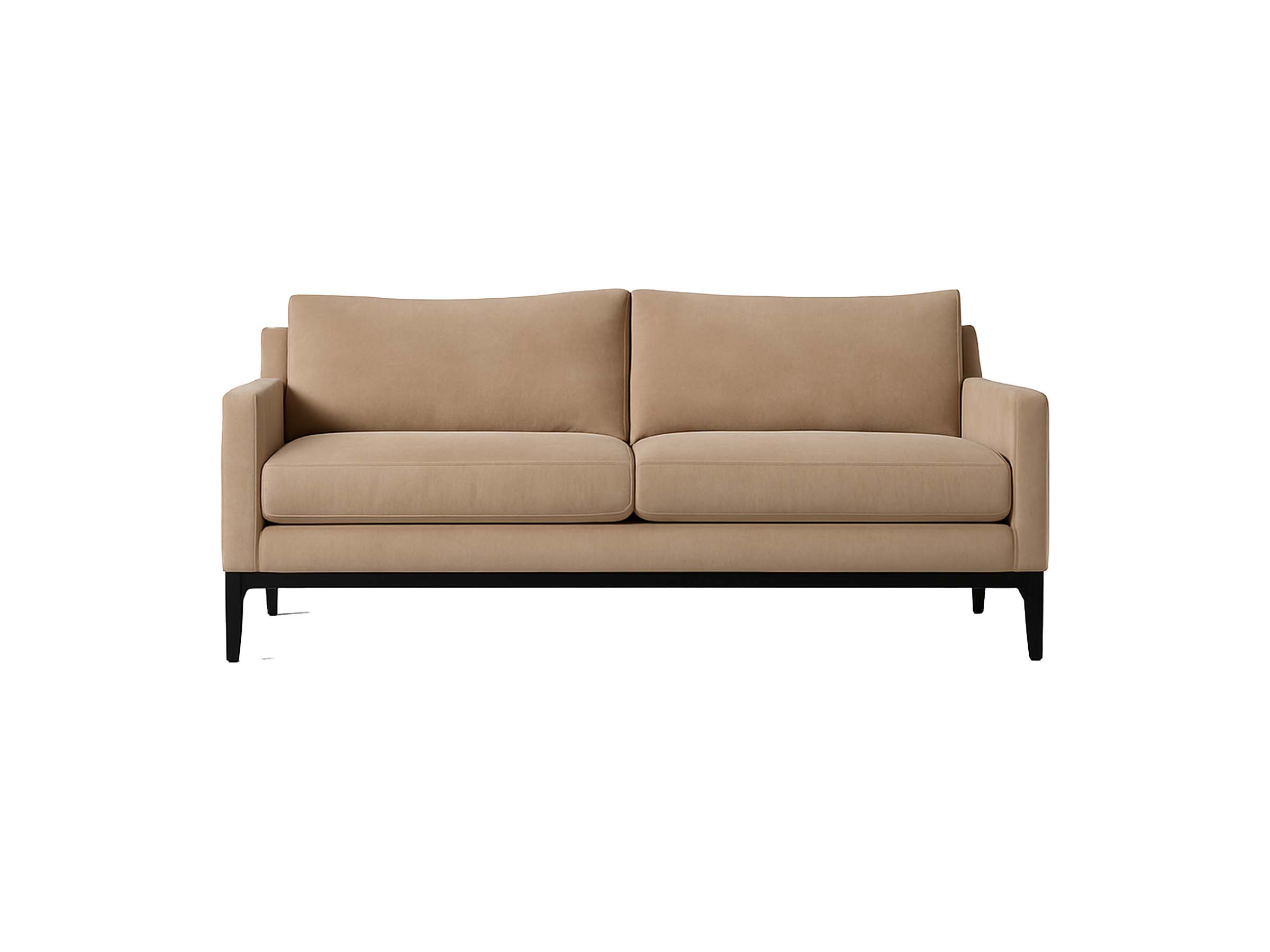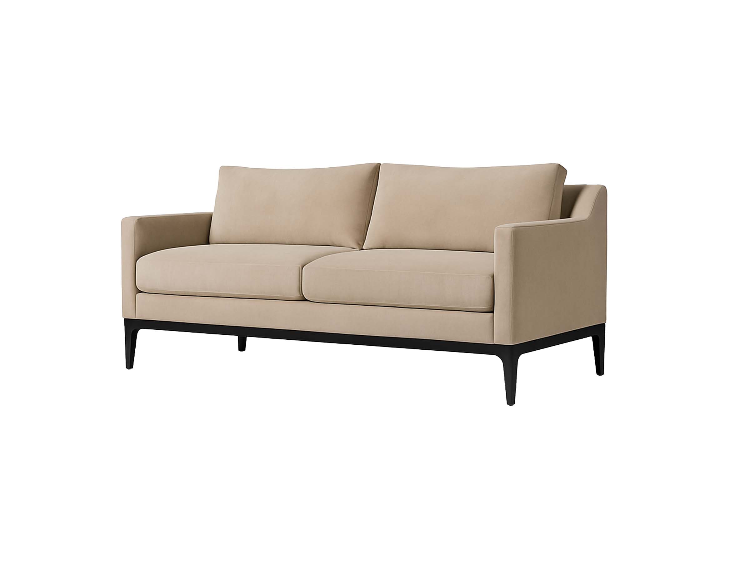 “A sleek modern sofa with a black base, crafted for contract-grade durability and timeless style.”