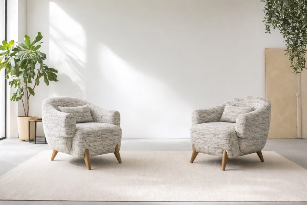 The Claire Chair blends sculptural softness with timeless sophistication. Its gently curved silhouette and plush form invite relaxation while maintaining a refined aesthetic suited for modern interiors. Subtle tailoring and elegantly tapered legs add balance and lightness, making the Claire an ideal accent piece for lounges, suites, and residential settings alike.