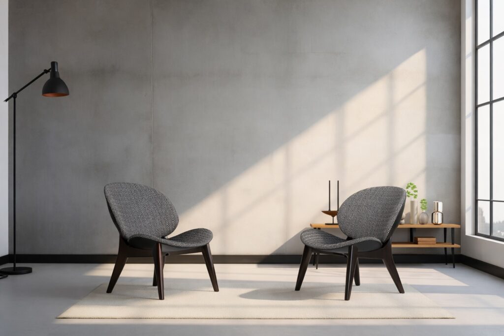 The Curve Lounge Chair is a padded chair having a contemporary design, characterized by an enveloping backrest, a combination of discreet elegance and maximum comfort. Ideal for a hotel, bar or restaurant lobby area. Upholstered in fabric, leather or faux leather. Available in a variety of wood stains, lacquers, and European Oak.