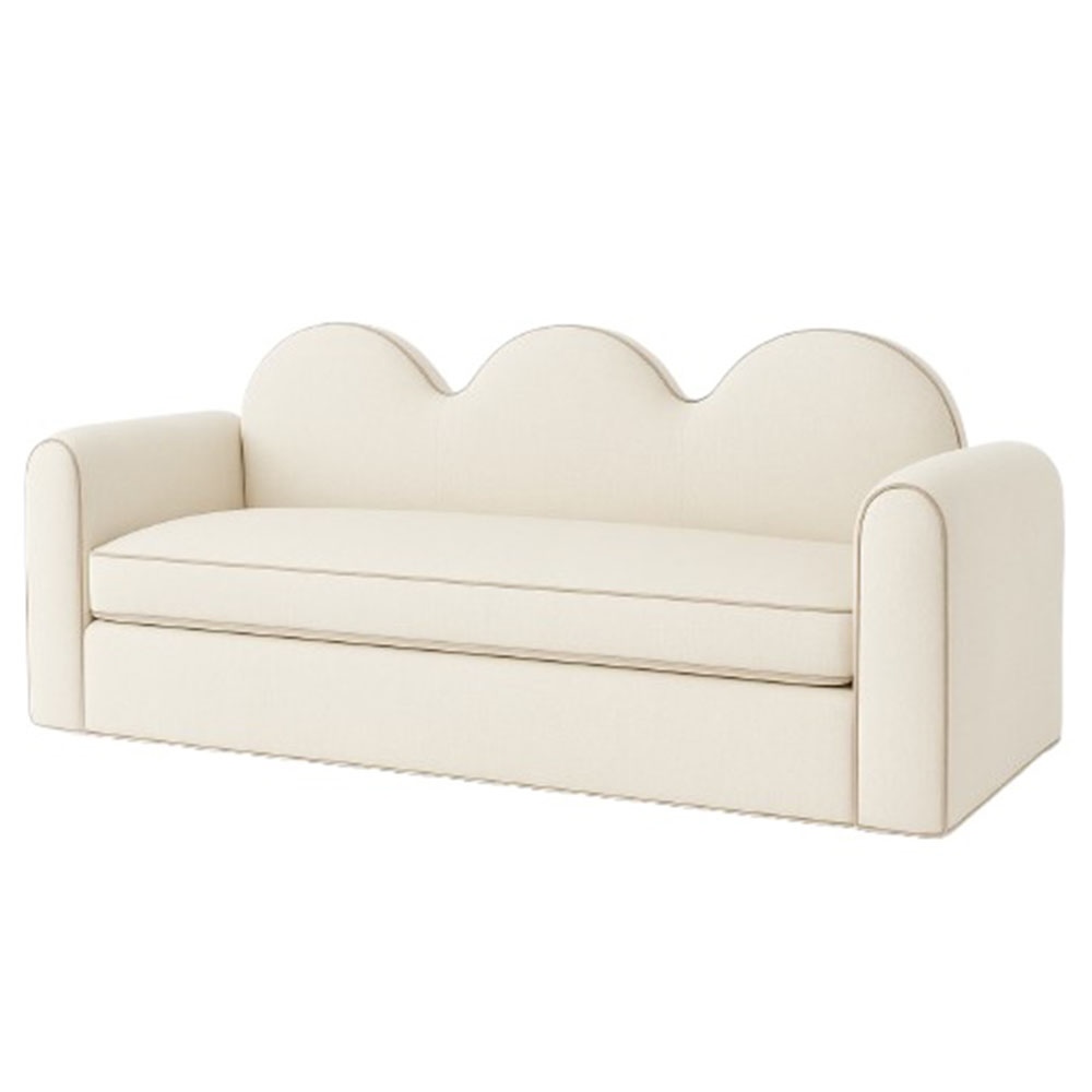 “A sleek curved-back sofa with a tailored bench seat, crafted for contract-grade strength and timeless style.”