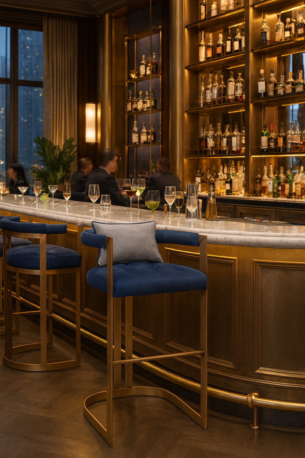 Inspired by the Hollywood’s golden era, the Denise chair represents all the glamour and prestige of that era. Made of European plated metal and upholstered in a variety of contract materials, the modern midcentury Denise chair is definitely a decorative statement for your dining room or luxury interior project.