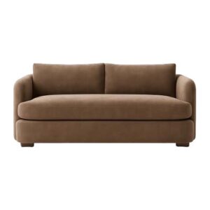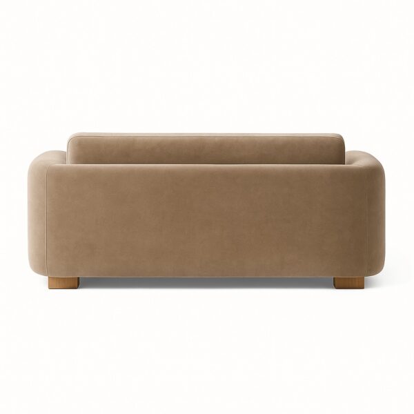 “Designed for boutique hotels and modern living, this sofa pairs soft rounded arms with a plush velvet seat in light taupe. Compact yet inviting, it delivers timeless style with contract-grade durability.”