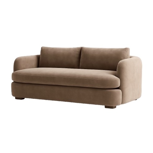 A refined blend of comfort and durability, this hotel-grade sofa features rounded arms, plush bench seating, and soft low-pile velvet in a versatile light taupe. Resting on modern block legs, its compact profile is perfect for boutique suites, lobbies, and residential settings alike. Crafted with a reinforced hardwood frame and contract-grade upholstery, it delivers timeless style built to withstand high-traffic use.