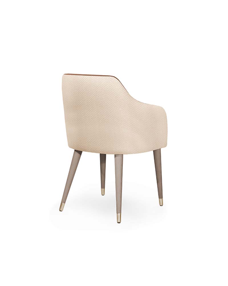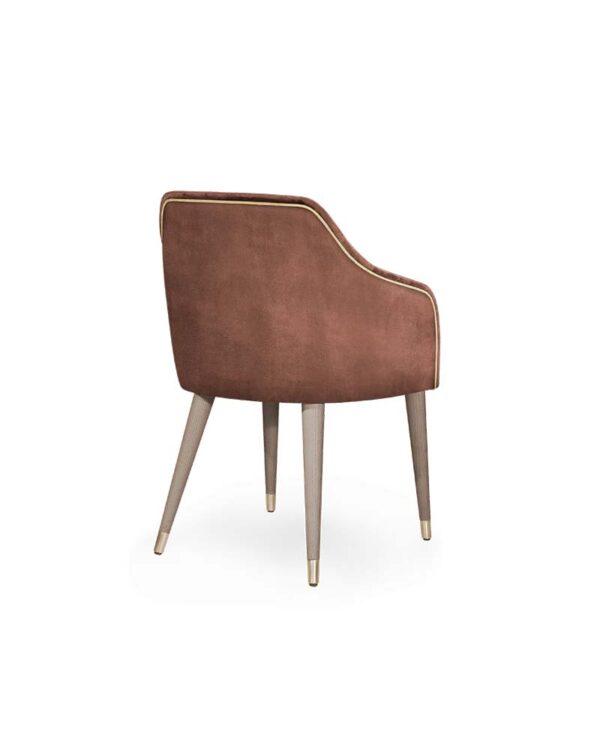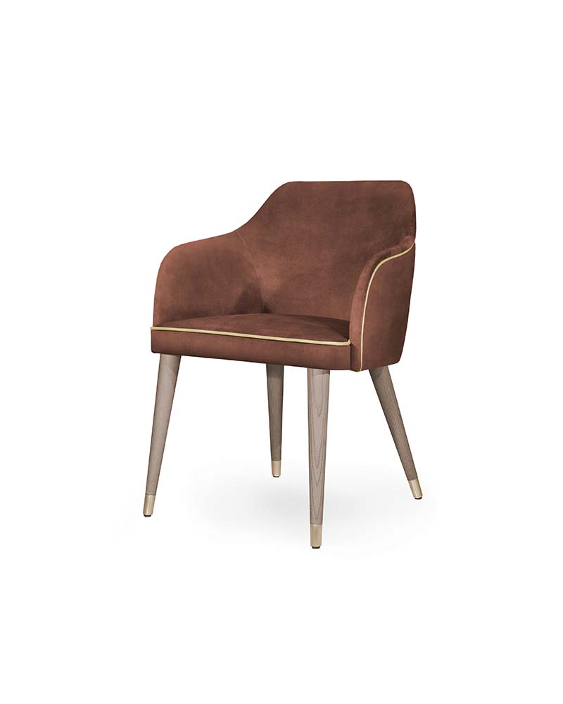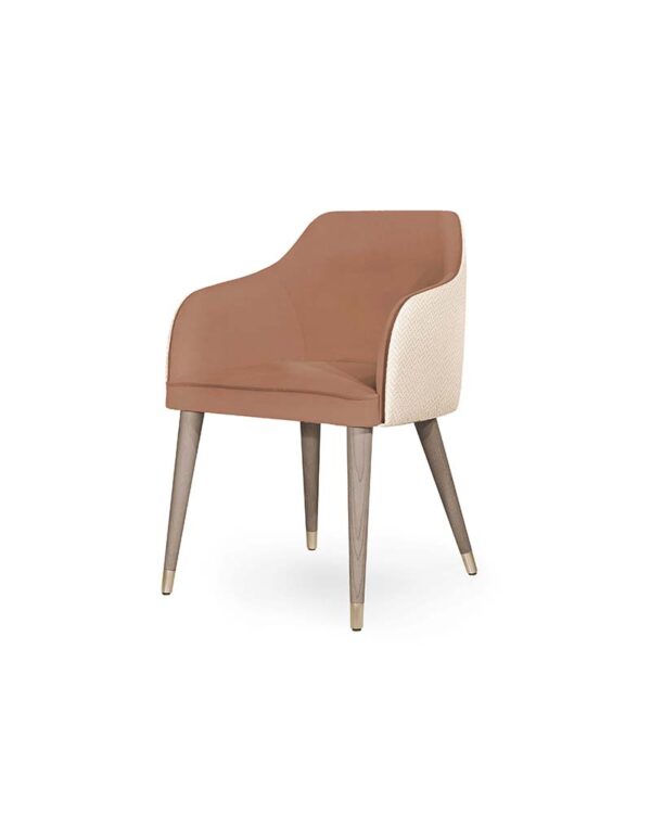 The Eskamor Chair blends modern elegance with subtle luxury. Featuring a smooth upholstered seat, refined wooden legs with metal accents, and a gently curved backrest, it offers both comfort and sophistication. Perfect for dining or lounge spaces, this chair elevates interiors with its sleek design and versatile appeal. Upholstered in fabric, leather or faux leather. Available in a variety of wood stains, lacquers, and European Oak.