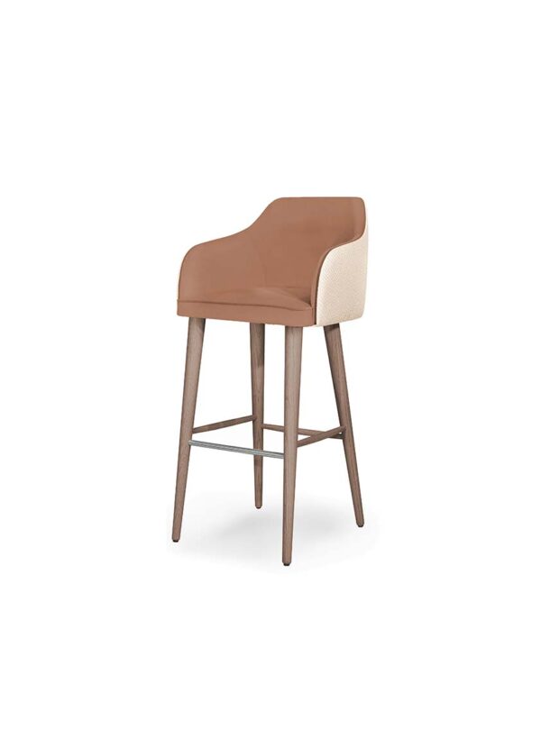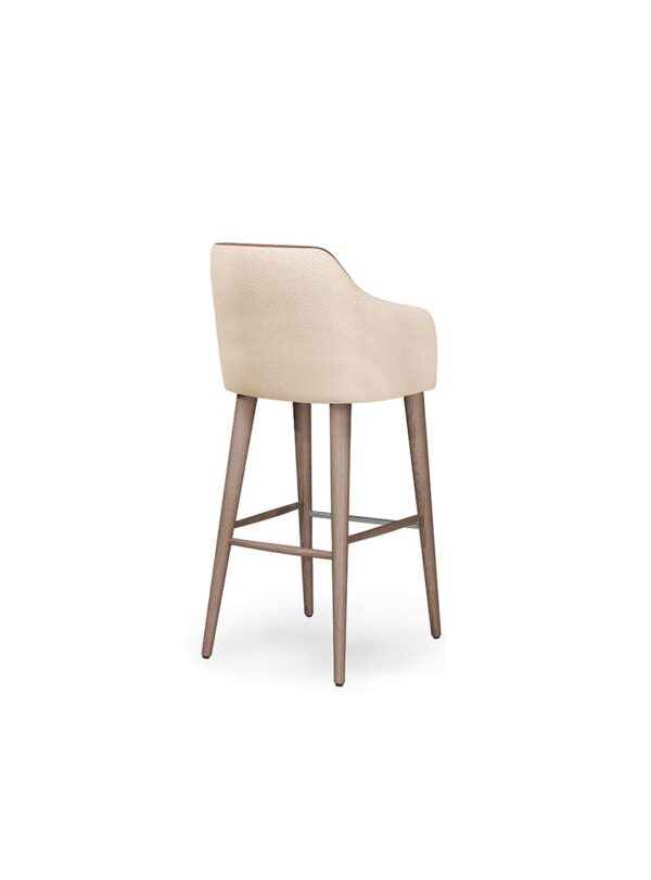 The Eskamor Barstool combines refined design with everyday comfort. Its curved upholstered seat, contrast back detailing, and solid wood frame create a striking balance of style and durability. With its sleek profile and supportive structure, the Eskamor is ideal for sophisticated bars, stylish kitchens, and modern hospitality spaces. In addition, we are able to upholster the lounge chair in a wide range of fabrics and leathers to suit. Available in a variety of wood stains and lacquers.