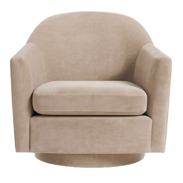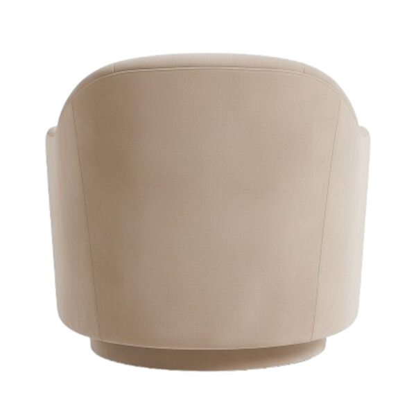 The Flora Chair combines sculptural curves with a smooth 360° swivel, offering modern comfort in a compact silhouette. Its enveloping back and plush seat makes it a standout piece for lounges, suites, or residential living spaces.