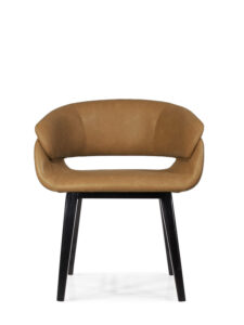 The Kype Armchair has a perfect ergonomic design of suitable height and curved backrest, and padded seat support your body comfortably when sitting. This armchair is constructed from a solid wood frame with an elegant shape for a highly durable design that is suitable for residential and contract use. Ideal for a hotel, bar or restaurant lobby area. Upholstered in fabric, leather or faux leather. Available in a variety of wood stains, lacquers, and European Oak.