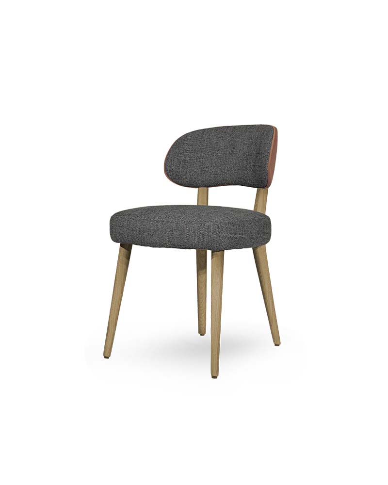 The Logan Chair combines mid-century inspiration with modern comfort. Featuring a sleek upholstered seat, gently curved backrest, and natural wood legs, it offers both style and durability. Its two-tone design adds a refined contrast, making it a versatile choice for dining, lounge, or hospitality settings. Upholstered in fabric, leather or faux leather. Available in a variety of wood stains, lacquers, and European Oak.