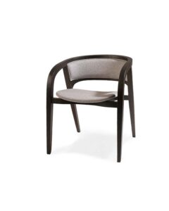 Using remarkable joinery techniques, skilled woodworkers expertly fit sections of solid beech wood to fashion the Nemesis modern curves. Showcasing stunning exposed joinery details, the dining chair embraces with a barrel back that flows into armrests. The slim, padded seat perfectly mimics the frame’s circular profile and is neatly upholstered. In addition, we are able to upholster the chair in a wide range of fabrics and leathers to suit. Available in a variety of wood stains, lacquers, and European Oak.
