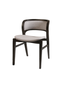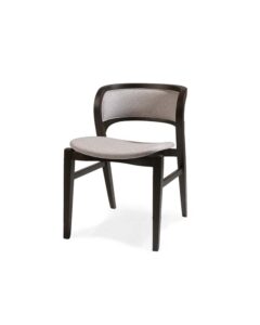 Using remarkable joinery techniques, skilled woodworkers expertly fit sections of solid beech wood to fashion the Nemesis modern curves. Showcasing stunning exposed joinery details, the dining chair embraces with a barrel back that flows into armrests. The slim, padded seat perfectly mimics the frame’s circular profile and is neatly upholstered. In addition, we are able to upholster the chair in a wide range of fabrics and leathers to suit. Available in a variety of wood stains, lacquers, and European Oak.
