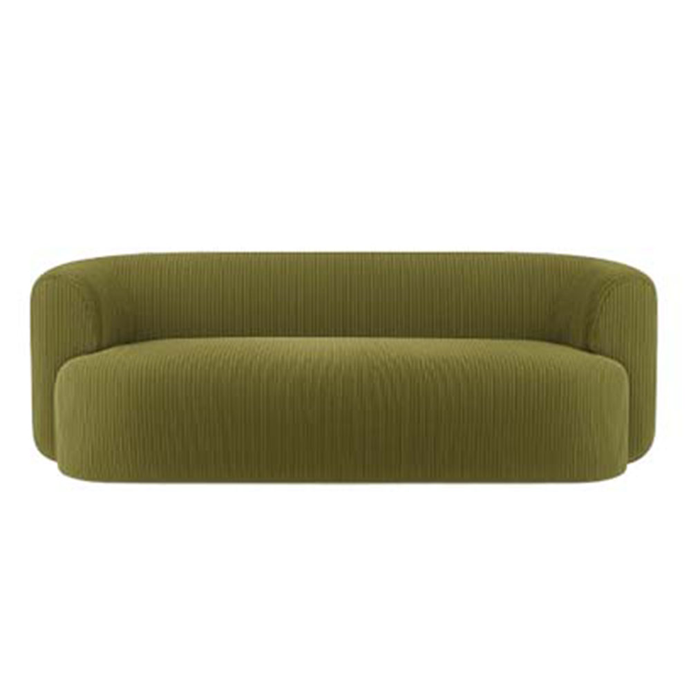 A sculptural silhouette with rounded contours and a seamless base defines the Olivia Sofa. Its continuous form creates a bold yet inviting statement, while the generous seat and enveloping arms provide unmatched comfort. Designed for modern interiors, this piece combines refined simplicity with a striking presence.