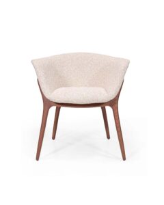 The Olympia Armchair showcases sleek curves and a refined silhouette, blending modern sophistication with timeless comfort. Featuring a fully upholstered seat and sculpted wooden frame, it delivers both elegance and durability. Perfect for dining, lounge, or hospitality spaces, the Olympia adds a touch of contemporary luxury to any setting. Upholstered in fabric, leather or faux leather. Available in a variety of wood stains, lacquers, and European Oak.