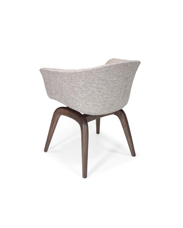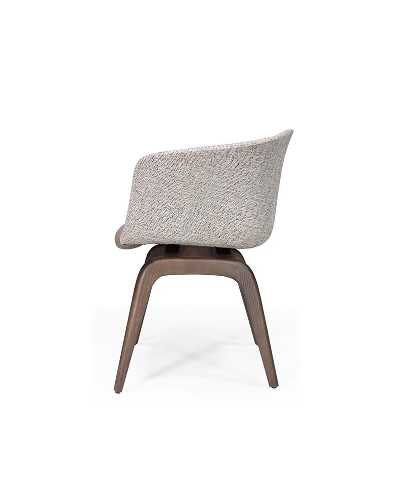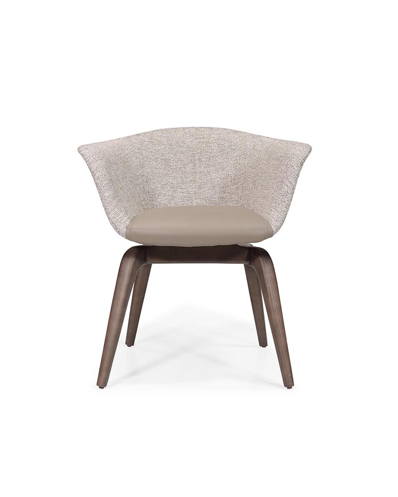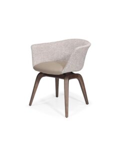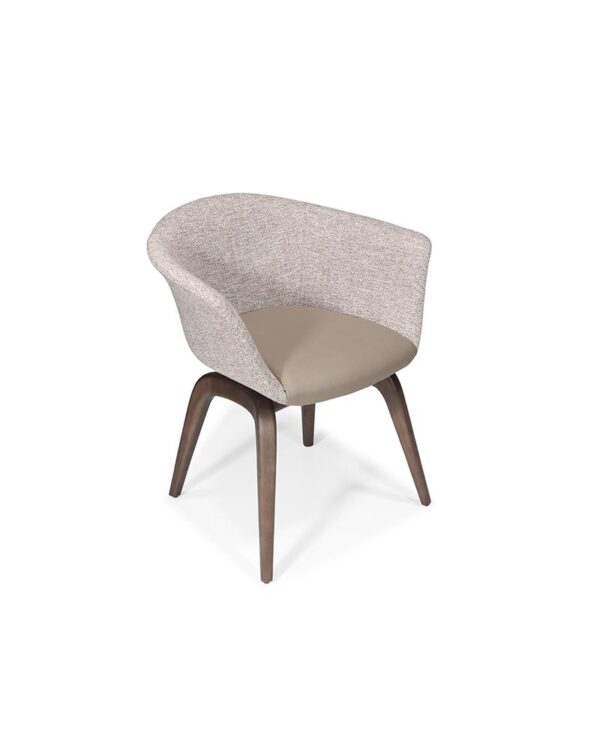 The Olympia Wood Armchair blends timeless craftsmanship with contemporary elegance. Featuring a wide upholstered seat, curved backrest, and sculpted wooden legs, it offers both comfort and refined style. Perfect for dining rooms, lounges, or hospitality interiors, this chair brings warmth and sophistication to any setting. Upholstered in fabric, leather or faux leather. Available in a variety of wood stains, lacquers, and European Oak.