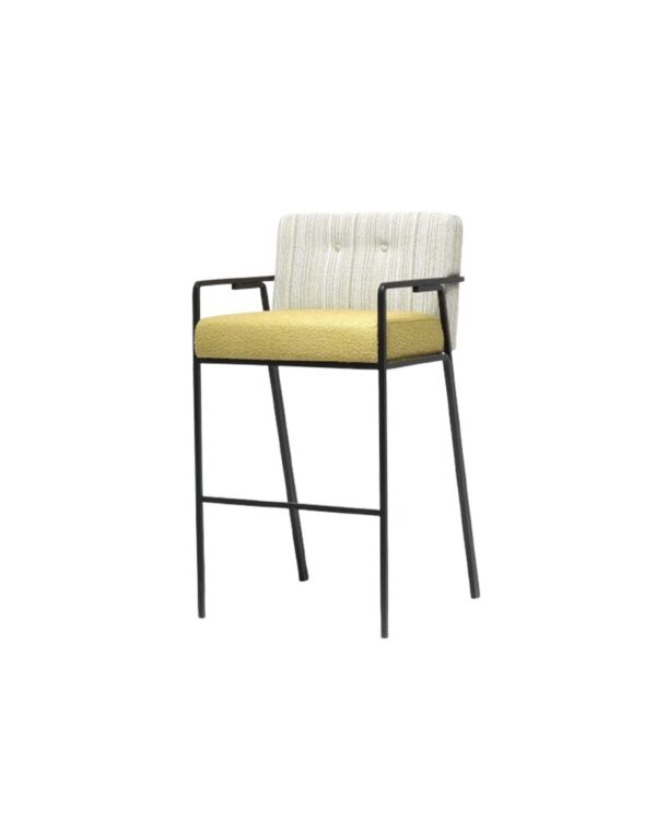 The Pavia Barstool blends modern design with retro charm, featuring a slim metal frame, upholstered seat, and button-tufted backrest. Its clean lines and tailored details make it a versatile choice for stylish bars, restaurants, and contemporary kitchen spaces.Upholstered in fabric, leather or faux leather. Available in a variety of color finishes.