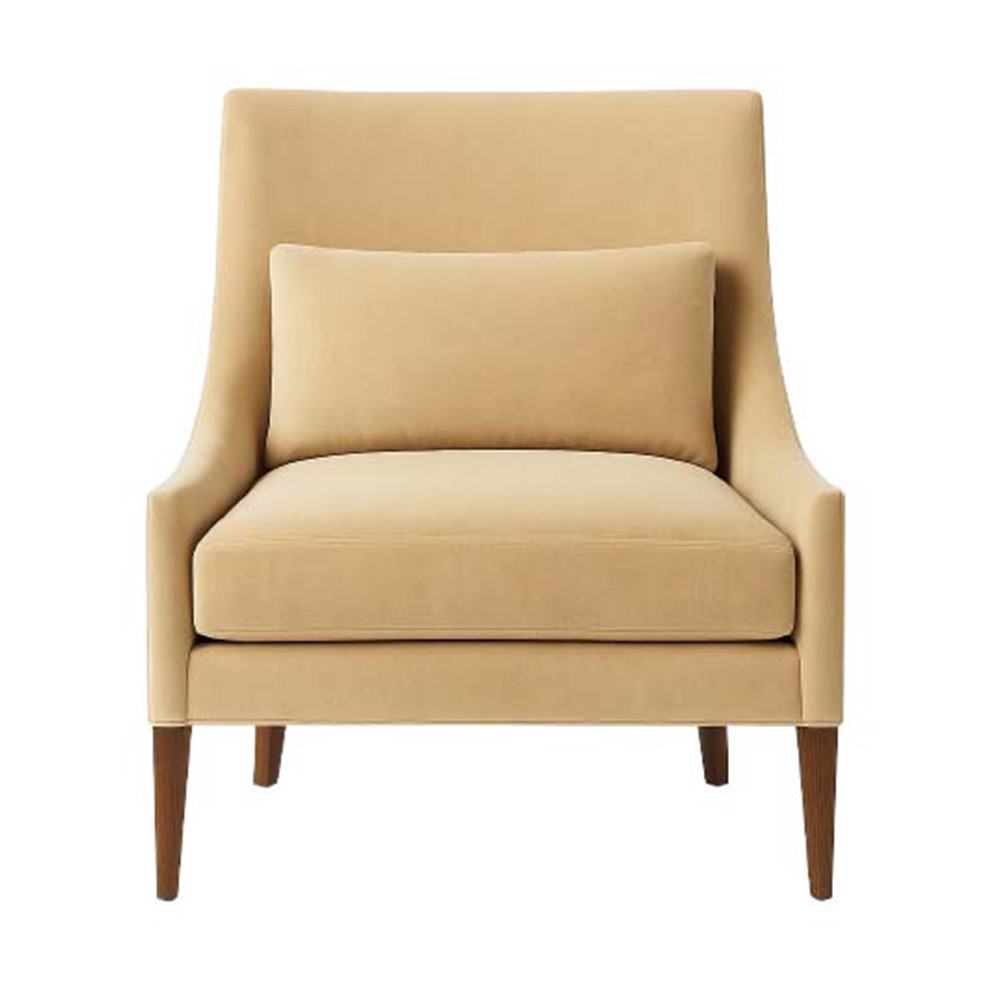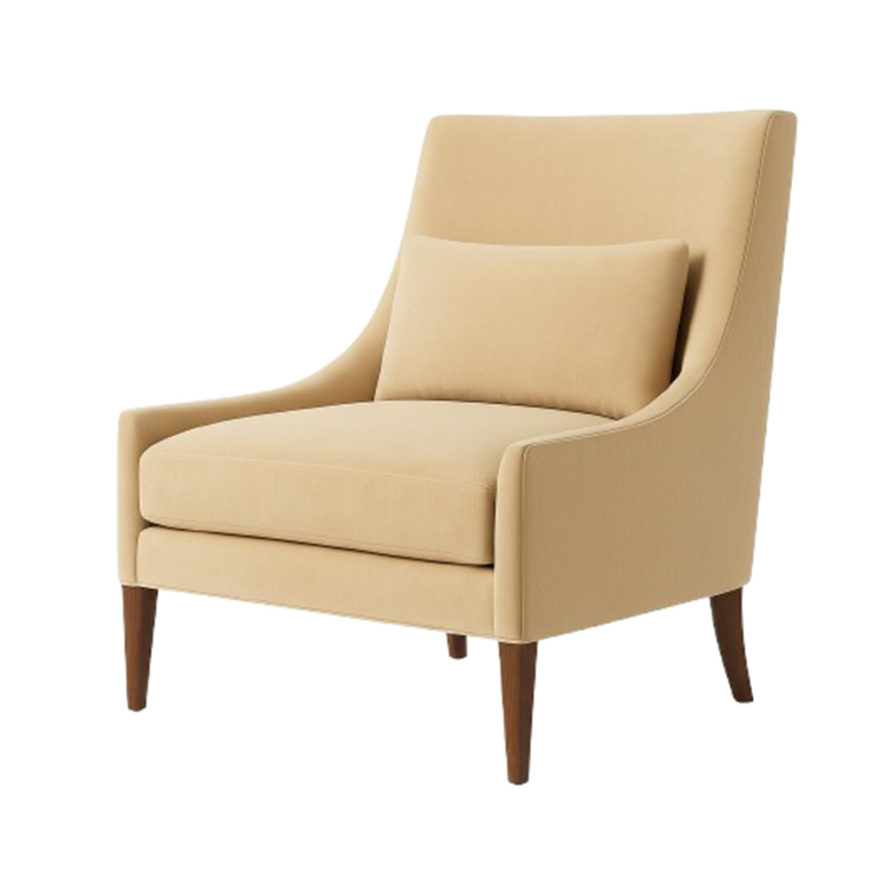 The Pia Chair captures timeless refinement with its sculpted silhouette, tailored seat, and subtly flared back. Perfectly balanced on tapered wooden legs, it brings effortless sophistication to both residential and hospitality spaces.