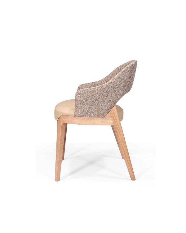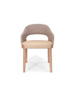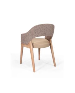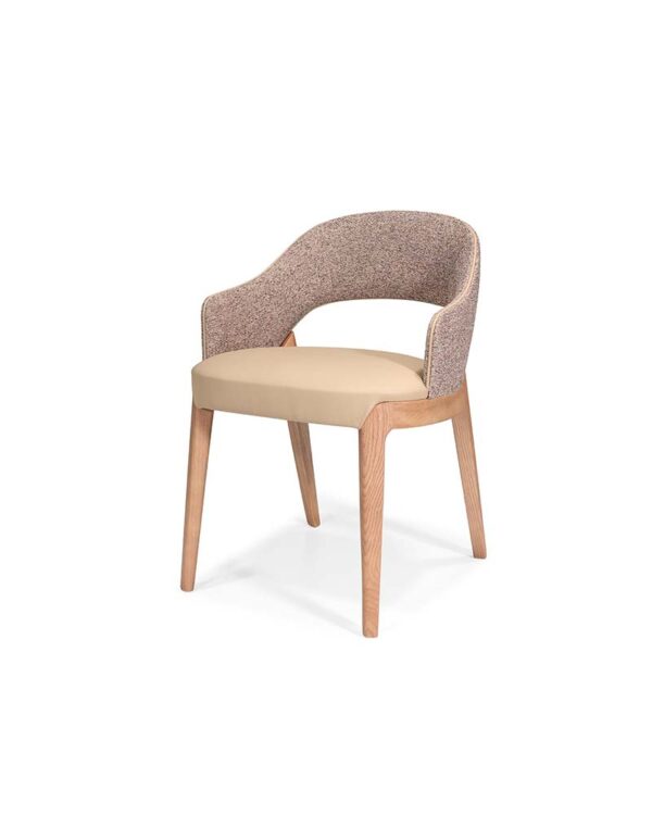 The Raider Armchair showcases sleek contemporary lines with a refined open-back design. Upholstered for comfort and paired with a sculpted wooden frame, it delivers both durability and modern elegance. A versatile choice for dining, lounge, or hospitality settings, the Raider adds sophistication to any interior. Upholstered in fabric, leather or faux leather. Available in a variety of wood stains, lacquers, and European Oak.