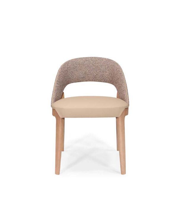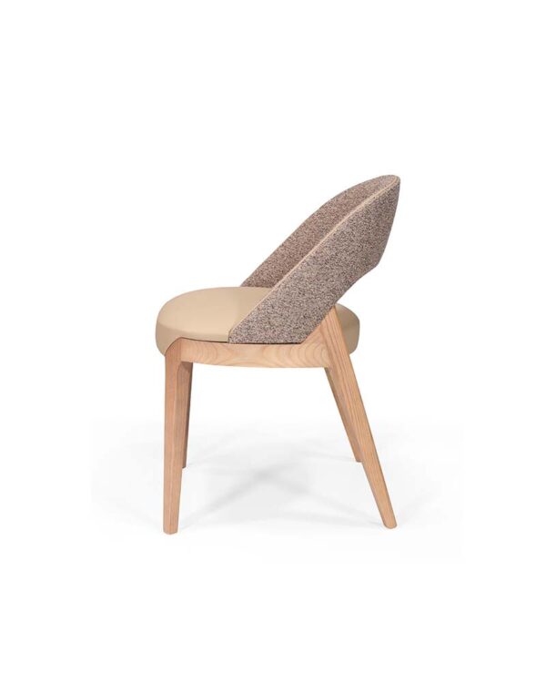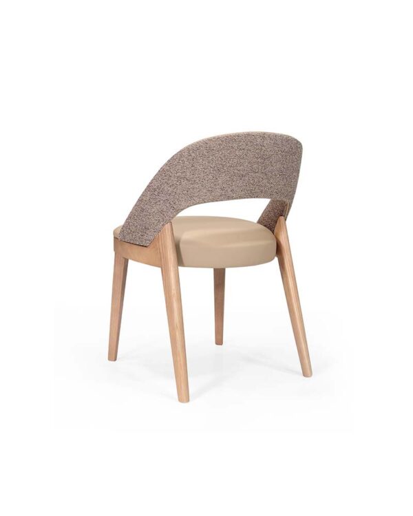 The Raider Chair showcases sleek contemporary lines with a refined open-back design. Upholstered for comfort and paired with a sculpted wooden frame, it delivers both durability and modern elegance. A versatile choice for dining, lounge, or hospitality settings, the Raider adds sophistication to any interior. Upholstered in fabric, leather or faux leather. Available in a variety of wood stains, lacquers, and European Oak.