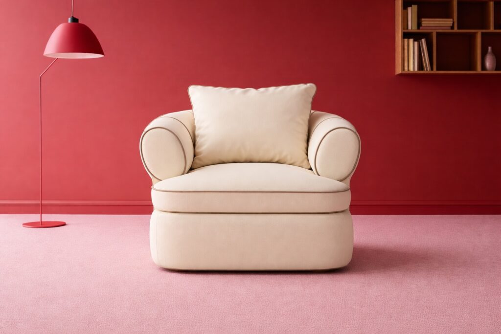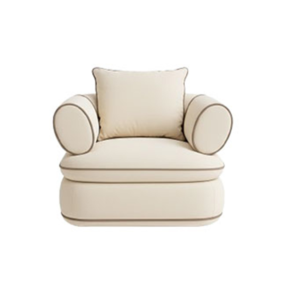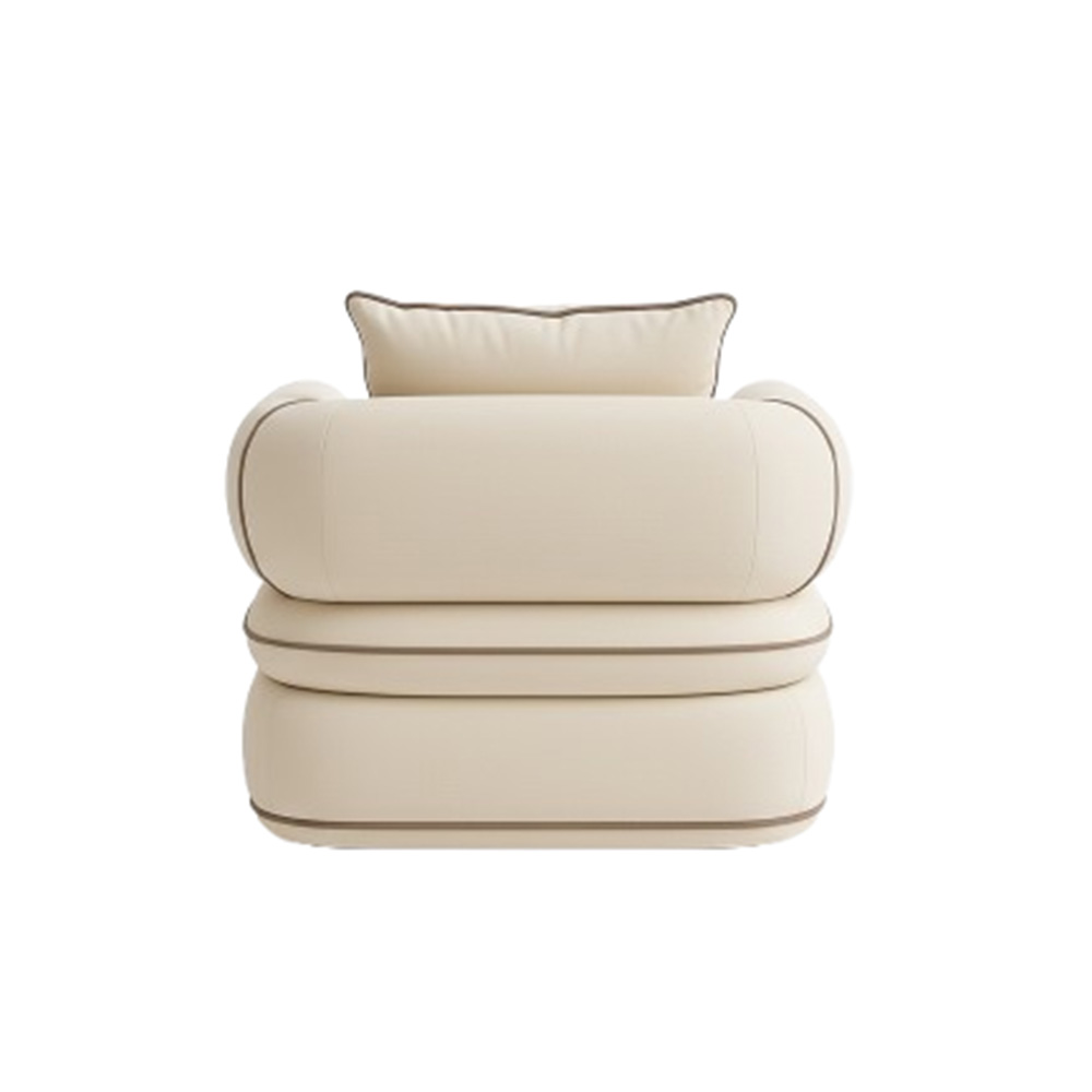 Playful yet poised, the Rosa Chair reimagines classic club seating with sculpted cylinder arms and contrast piping. Plush cushions and a continuous base create a silhouette that feels both nostalgic and contemporary. A striking piece for hotel lounges, reading corners, or elevated residential interiors.
