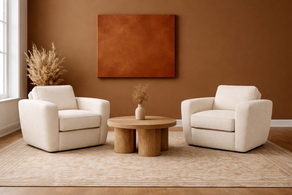 Softly sculpted and wrapped in a tactile boucle, the Sherry Lounge Chair balances generous curves with a compact footprint. The plush back and deep seat invite relaxation while maintaining a tailored silhouette suitable for hospitality or residential use. A modern classic that feels both grounded and effortless.