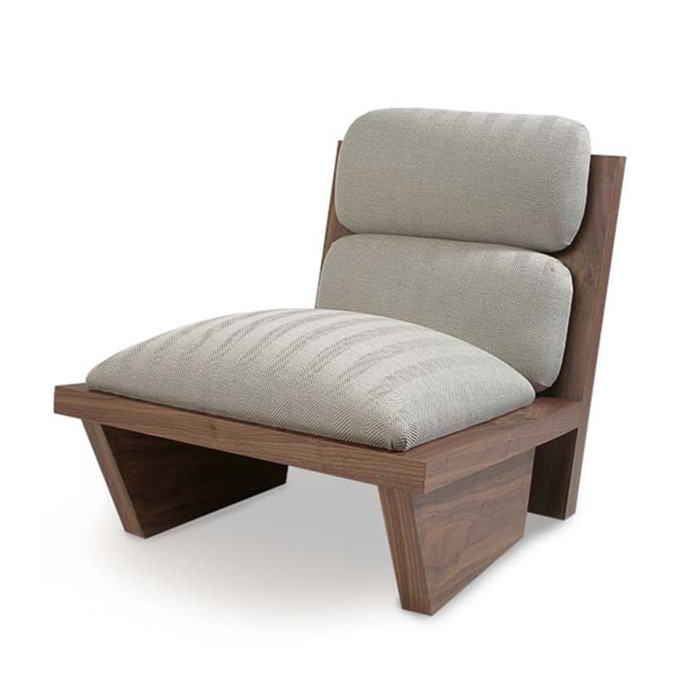 | This Shia modern lounge chair is beautifully constructed from solid wood. The lounge chair’s silhouette is simple, modern, and sleek with comfortable back and seat cushions. This is the perfect chair for any space. In addition, we are able to upholster the chair in a wide range of fabrics and leathers to suit. Available in a variety of wood stains, lacquers, and European Oak. |