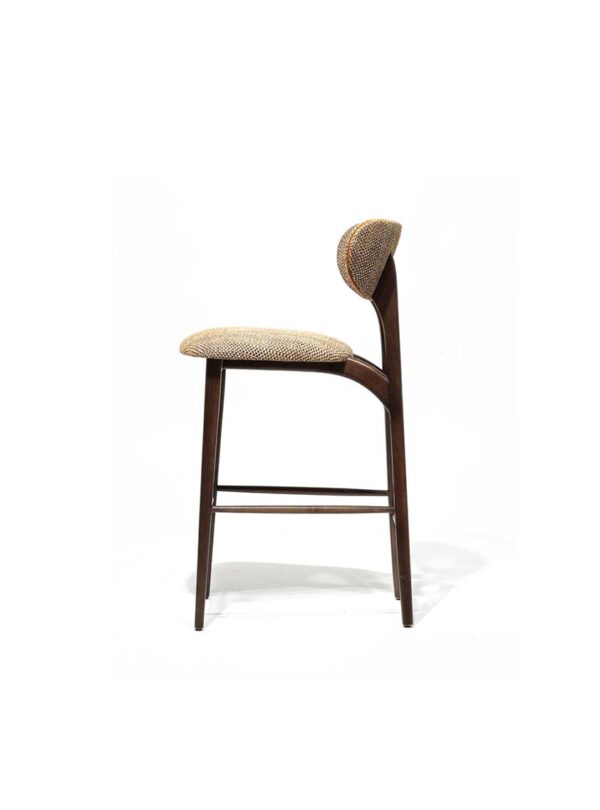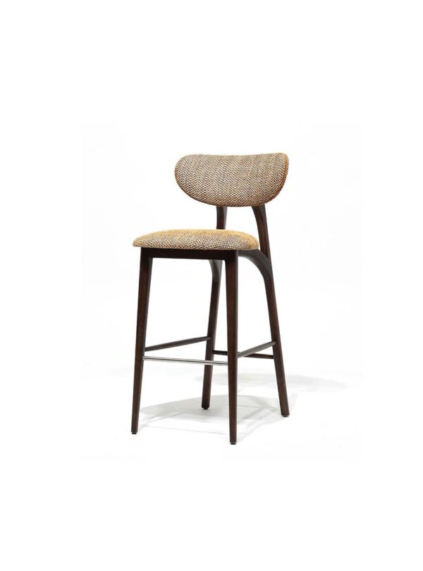 The Sue Barstool embodies mid-century modern charm with a refined contemporary touch. Featuring a gently curved backrest, tapered wood legs, and a comfortably upholstered seat, it delivers both style and support. Its sleek silhouette and warm finishes make the Sue Barstool a versatile choice for upscale bars, restaurants, and residential interiors. Upholstered in fabric, leather or faux leather. Available in a variety of wood stains, lacquers, and European Oak.