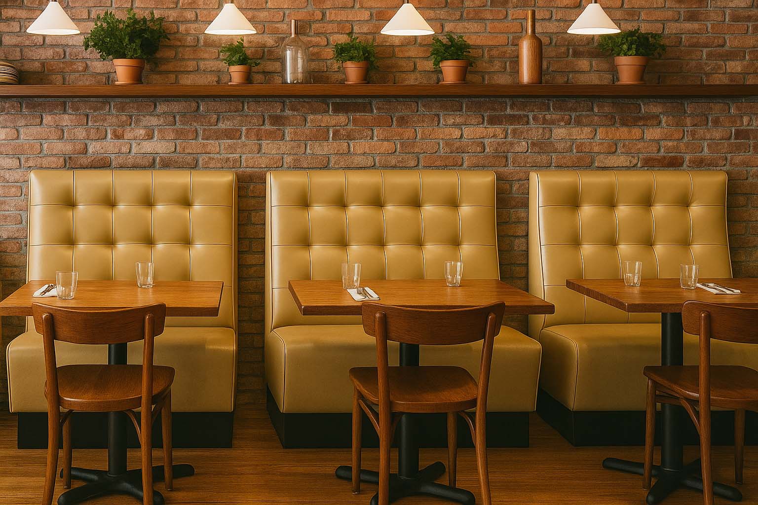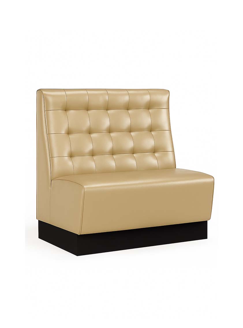 The Tufted Banquette features a timeless grid-tufted backrest paired with a smooth upholstered seat for classic comfort and style. Built on a durable base, this banquette is perfect for restaurants, lounges, and hotel dining areas, offering both elegance and durability for high-traffic hospitality settings. Upholstered in fabric, leather, or faux leather. Available in a variety of wood stains, lacquers, and European Oak. Custom sizes and bases available upon request.