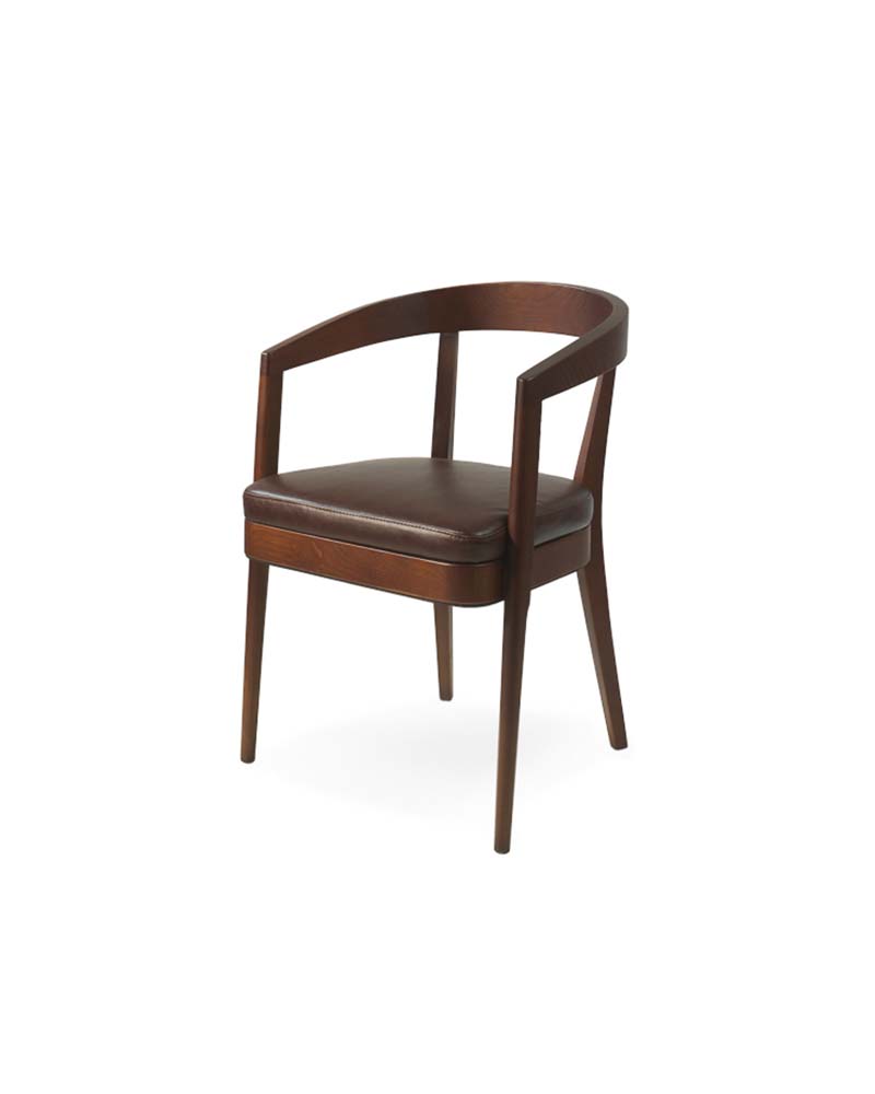 Elegant architectural lines accent this sophisticated Tyra armchair, upholstered in a variety of fabrics or leather. The optional detailed upholstered back adds style as the frames hugs and supports your back in the perfect mix of comfort and style. In addition, we are able to upholster the chair in a wide range of fabrics and leathers to suit. Available in a variety of wood stains, lacquers, and European Oak.