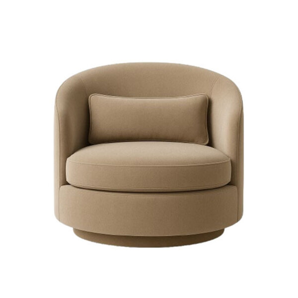 The Vesper Chair embodies modern refinement through its soft circular form and enveloping comfort. Resting on a hidden swivel base, it offers smooth rotation and an inviting silhouette. Ideal for hotel suites, lounges, and residential interiors, Vesper delivers timeless balance between structure and serenity.