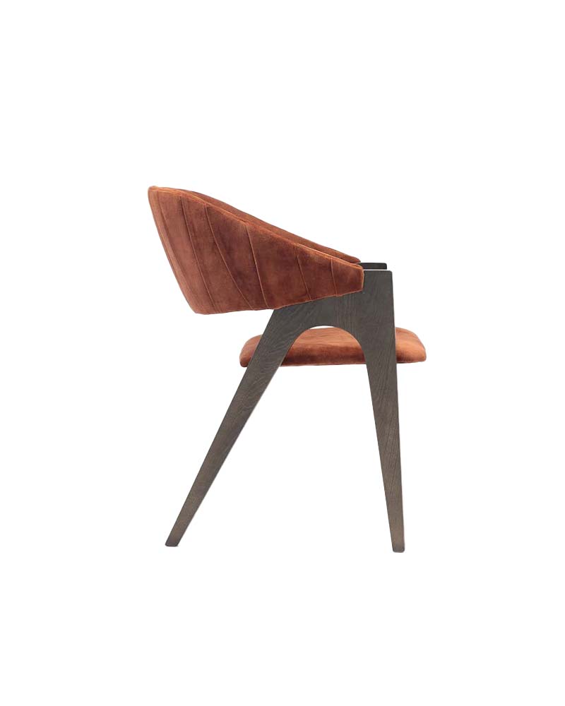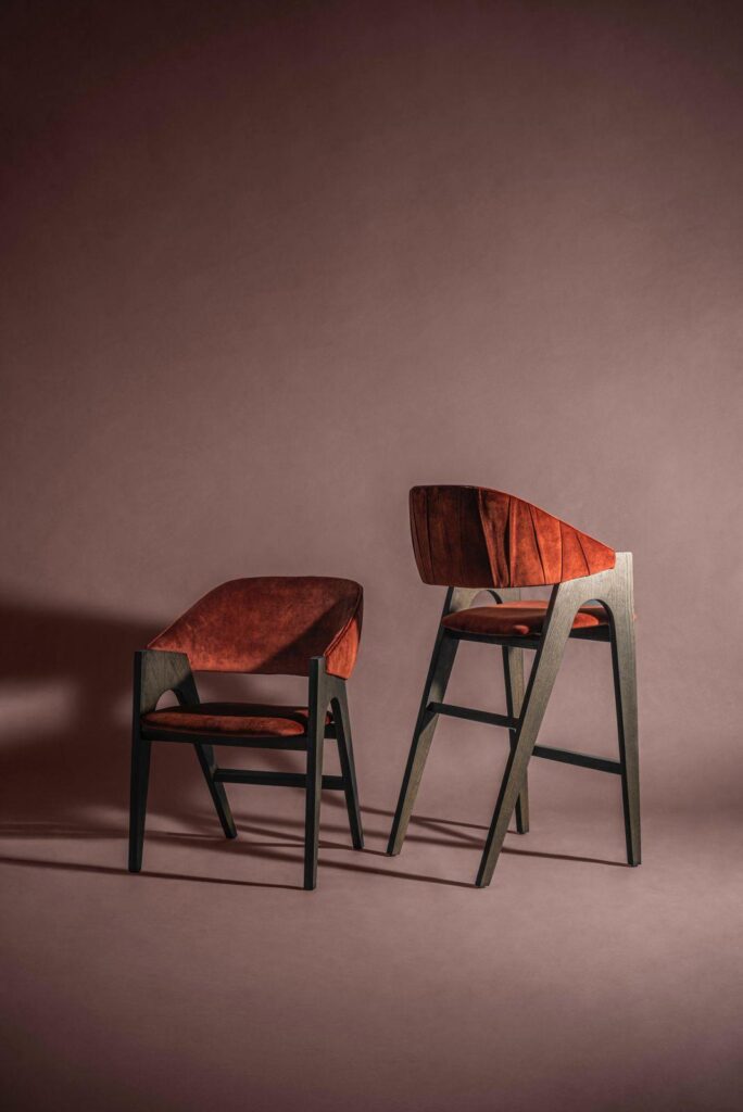 Wallace Armchair – The Wallace Armchair brings bold presence and refined craftsmanship together. With its rich wood frame, sculpted silhouette, and plush upholstery, this chair blends comfort with contemporary style. Its tailored back and seat ensure lasting support, while the strong lines and warm finishes make it an ideal piece for upscale dining rooms, lounges, and hospitality spaces. Upholstered in fabric, leather or faux leather. Available in a variety of wood stains, lacquers, and European Oak.